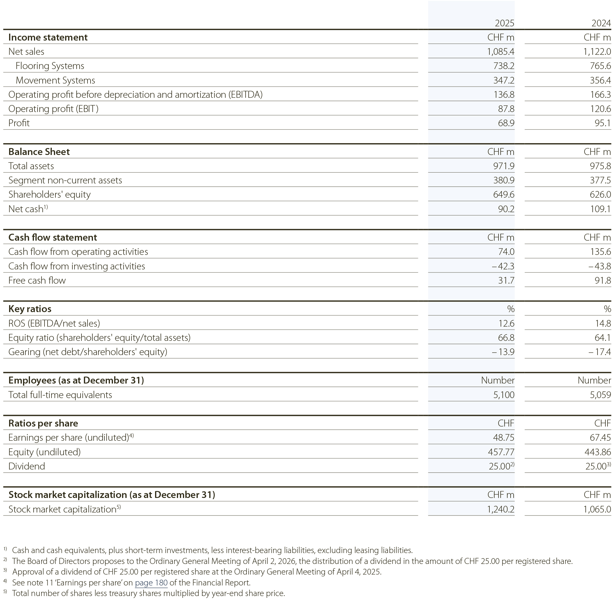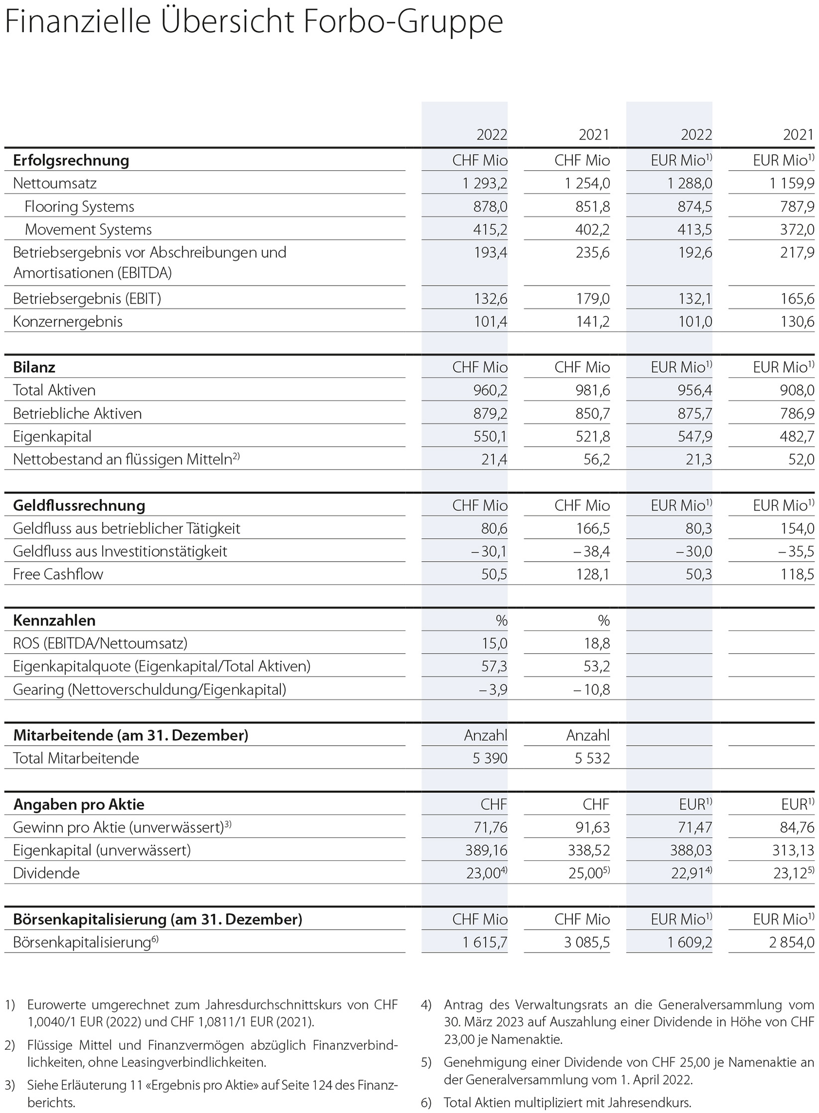 Untenstehend finden Sie die wichtigsten Kennzahlen der Forbo-Gruppe.