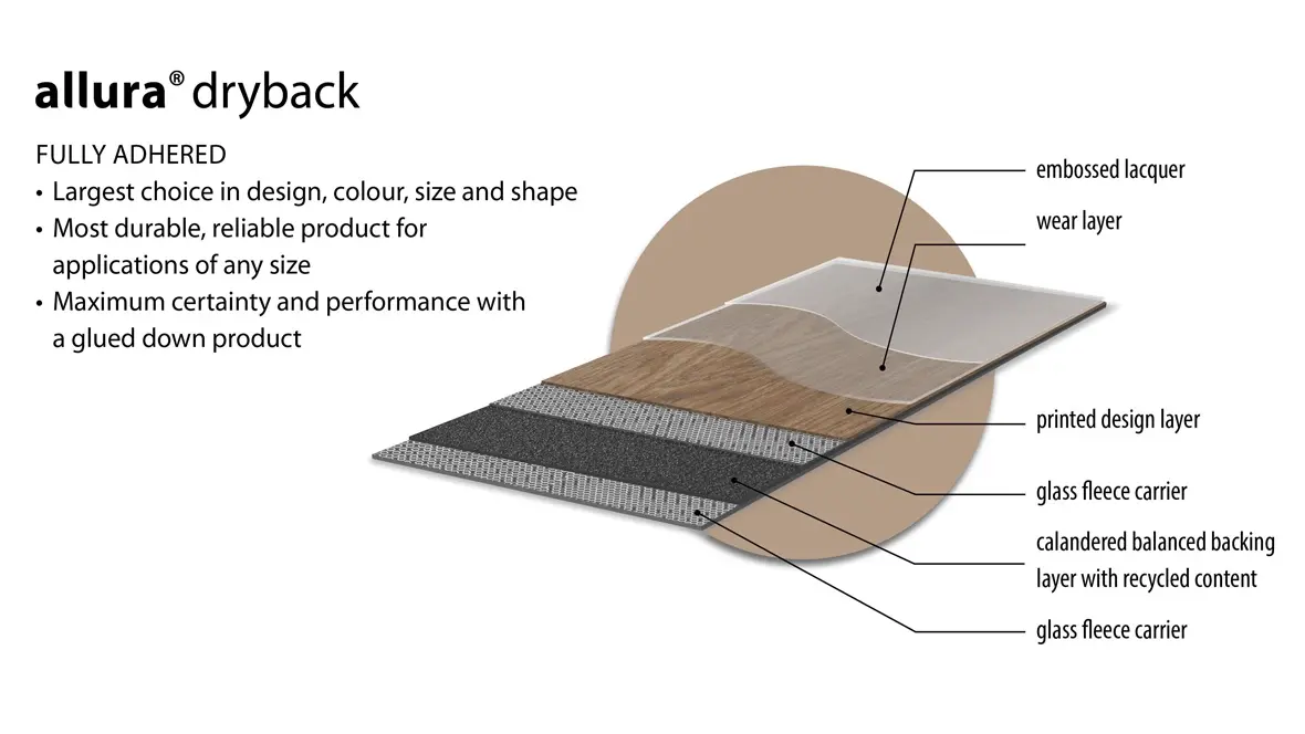 Allura Decibel is a flooring solution for any application area, available in 2 different qualities: a product with a wear layer of 0.8 mm for intensive use and a product with a wear layer of 0.35 for use in any residential environment.