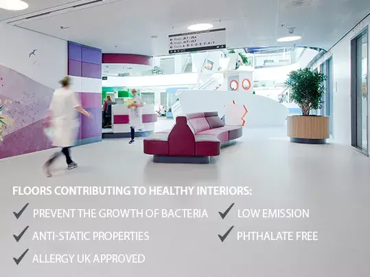 From reception areas and corridors which are subject to heavy footfall, to canteens and family waiting rooms that require a more relaxed atmosphere to areas requiring strict and effective infection control, Forbo Flooring Systems has a flooring solution for every space within healthcare facilities. Every solution. One supplier.