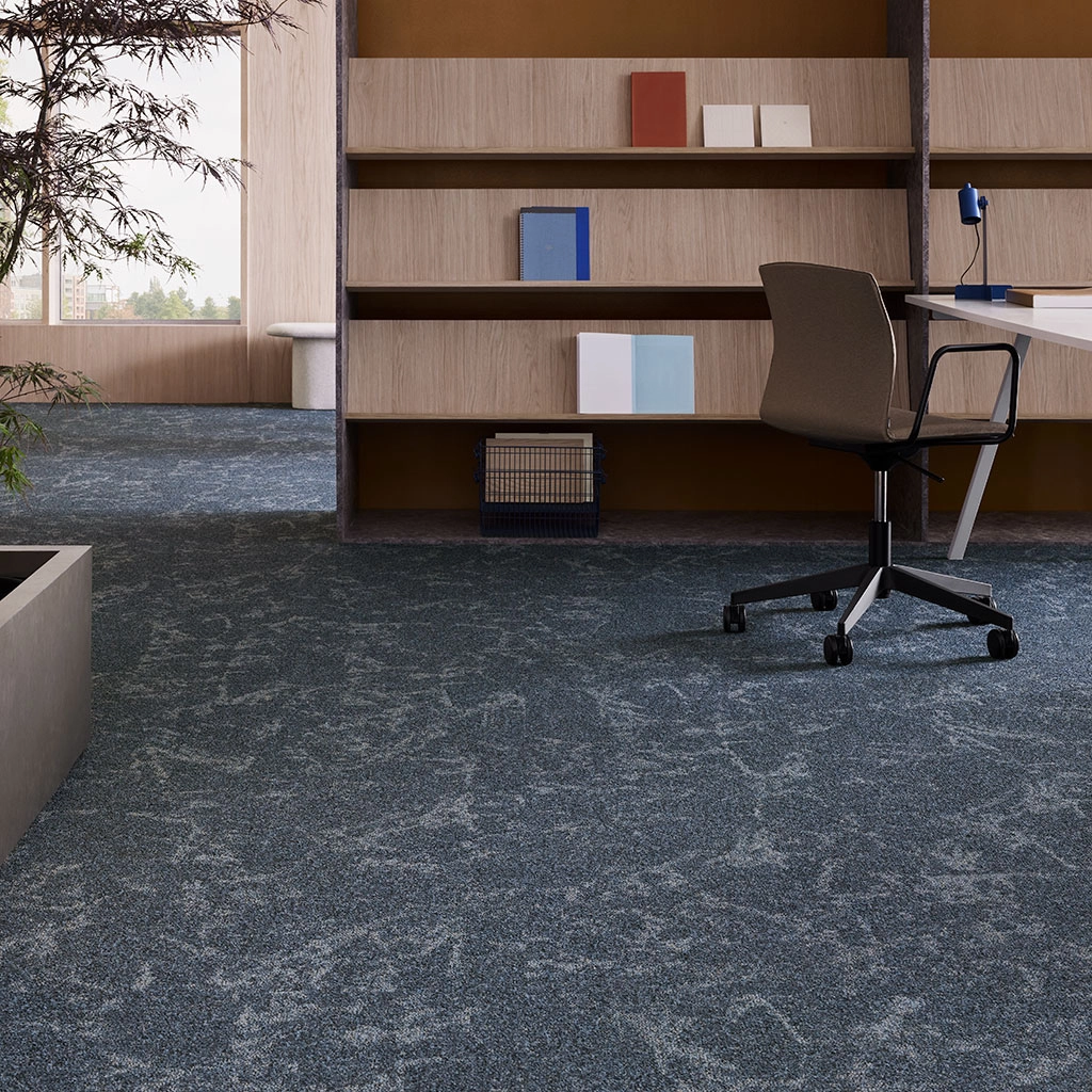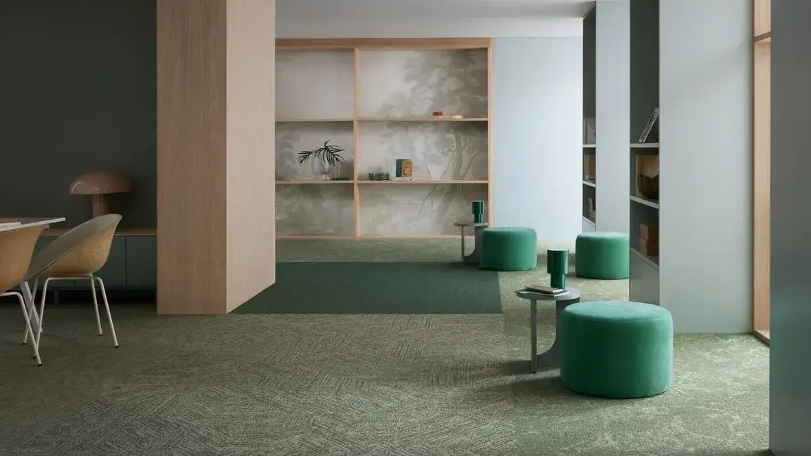 Tessera Tranquillity features a soft, organic design in a calm, nature-inspired palette. Made with 100% ECONYL® regenerated polyamide 6 yarn, it contains over 75% recycled content by weight and has an embodied carbon footprint of under 2 kg CO₂e/m² (A1–A3).