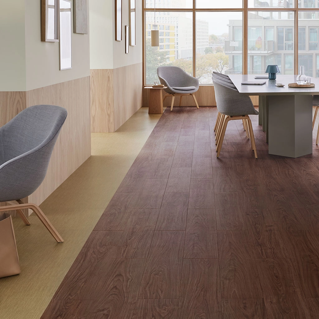 • Zaprojektowane z myślą o obiegu zamkniętym: montaż „loose lay” bez przyklejania na stałe, tylko z użyciem środka mocującego, łatwe do usunięcia, naprawy, recyklingu lub ponownego wykorzystania.