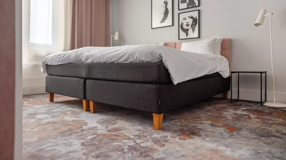 Hotellet har sedan tidigare goda erfarenheter av Flotex-plankor i restaurangdelen, särskilt ur ett städ- och underhållsperspektiv – en avgörande faktor i miljöer där renlighet är central. När man fick kännedom om att Flotex även kan lösläggas ovanpå befintligt parkettgolv och därmed ersätta en mer omfattande renovering, valde man att genomföra en testinstallation av Flotex Next i augusti 2025.